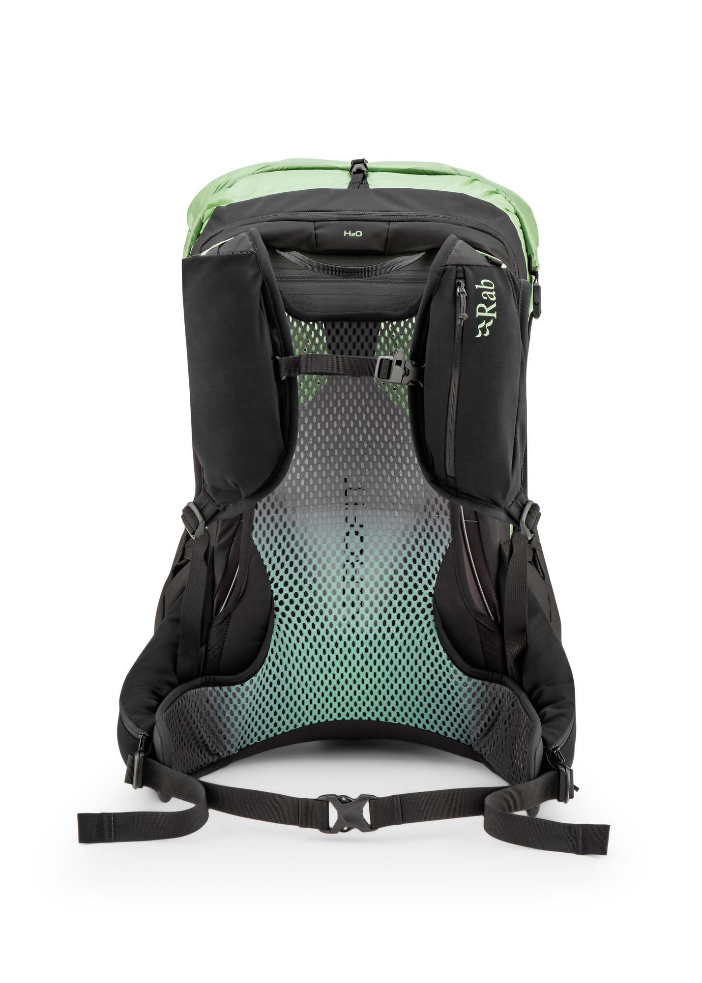 Síťkou odvětraný zádový systém AEROFIT neuvěřitelně sedí na zádech a je vzdušný i při náročných výstupech . V čele batohu je kapsa na rychlé odložení nezbytností, které je nutné mít po ruce. Po stranách další dvě kapsy na široké litrové lahve typu Nalgene. Kapsa na Softflask a velká strečová kapsa na mobil na ramenních popruzích. Bederák s předním dotahem a dvěma bočními kapsami na zip na drobnosti, které musí být po ruce. Hydrovak patří do zadní kapsy na zip a uvnitř najdeš i bezpečnostní kapsu na zip.